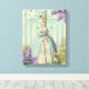 Lilas au printemps, traducido simplemente significa Lilacs en primavera. Este romántico y chic hotel de aspecto muy francés, pone en peligro el collage de un vintage plato del siglo XVIII, una encantadora imagen vintage de un perro en un cojín, mariposas y lilatas. Todo sobre un fondo de rayas azules y crema. ©Wickedly Lovely, todos los derechos reservados.