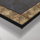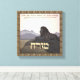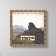 Un león simulado contra las montañas de Israel. La imagen está en tonos tierra. Salmos 113:3 aparecen tanto en hebreo como en inglés. El Talmud establece la regla de que si uno reza en la Diáspora, se dirigirá hacia la Tierra de Israel. La mayoría de los judíos en la diáspora viven al oeste de Jerusalén, así que se enfrentan al este (los "mizrach" hebreos) durante la oración. La palabra "mizrach" también se refiere al muro de la sinagoga que se encuentra frente al este, donde los asientos están reservados para el rabino y otros dignatarios. Además, "mizrach" se refiere a una placa de pared ornamental utilizada para indicar la dirección de la oración en los hogares judíos. El personalizado se basa en la oración de Salomón (Reyes I 8:33, 44, 48; II Chron. 6:34). Otro pasaje que apoya esta regla se encuentra en el Libro de Daniel, que relata el de la cámara alta de la casa, donde Daniel rezaba tres veces al día, cuyas ventanas se abrieron hacia Jerusalén (Dan. 6:10). La Tosefta exige que la entrada a la sinagoga esté en el lado este con la congregación en el oeste. El requisito probablemente se base en la orientación de la tienda de campaña de reunión, que tenía sus puertas en el lado oriental (Num. 2:2-3; 3:38), o el Templo de Salomón, cuyos portales estaban al este (Ezek. 43:1-4). Maimonides intentó conciliar la disposición de la Tosefta con el requisito de rezar hacia Jerusalén declarando que las puertas de la sinagoga debían tener cara al este, mientras que el Arca debía colocarse "en la dirección en que la gente reza en esa ciudad", es decir, hacia Jerusalén. El Shulkhan Arukh registra la misma regla, pero también recomienda que uno gire hacia el sureste en lugar del este para evitar la apariencia de adorar el sol. Si una persona no puede determinar los puntos cardinales, debe dirigir su corazón hacia Jerusalén. Es costumbre en los hogares judíos tradicionales marcar el muro en dirección a mizrah para facilitar una oración adecuada. Para ello, la gente usa placas murales artísticas inscritas con la palabra mizrah y pasajes escriturales como "Desde el alza (mi-mizrah) del sol hasta su caída, el nombre del Señor debe ser alabado" (Ps. 113:3), inscripciones kabbalísticas o imágenes de lugares sagrados. Estas placas se colocan generalmente en salas en las que la gente reza, como la sala de estar o los dormitorios.