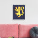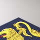 Este diseño de Richard H. Fay presenta un rampante de león heráldico, un león retratado en perfil criando sobre sus patas traseras, listo para evitar a todos los atacantes.