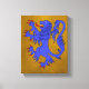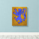 Este diseño de Richard H. Fay presenta un azure rampante de león heráldico, un león azul representado en el perfil criando sobre sus patas traseras, listo para evitar a todos los atacantes.