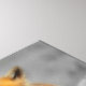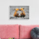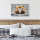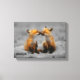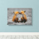 Dos adorables zorros bebés compartiendo un dulce beso. Colores naranjas suaves sobre un fondo blanco y negro.