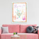 Una suave acuarela, retrato de una llama sonriente en naranjas y pasteles verde azulados. Artista: Mary Urban | ID de la imagen: SID22845NR