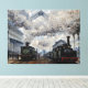 "Llegada del tren de Normandía" es un retrato dinámico del progreso industrial y la modernidad, que captura la energía bulliciosa de una estación de tren. La escena muestra la llegada de un tren de vapor a la estación Saint-Lazare de París. La composición se llena con el movimiento y la vitalidad de la estación, con el vapor y el humo nublado envolviendo la plataforma, creando una atmósfera nebulosa. Las pinceladas suaves y la paleta de colores vivos transmiten la impresión del momento, haciendo hincapié en la interacción de la luz, el vapor y el acero. A través de esta pintura, el poder transformador de la tecnología y el cambiante paisaje de la vida urbana a finales del siglo XIX, invita a los espectadores a experimentar la emoción y el dinamismo de la era industrial.