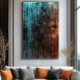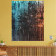 Goteos y manchas en tonos fríos y cálidos dividen el lienzo como emociones opuestas. Una lluvia cromática que expresa el conflicto y el equilibrio entre la luz y la sombra, el frío y el calor, el caos y el control.