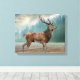 Un hermoso ciervo que corre a través de un bosque de niebla.