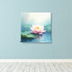 Esta imagen pacífica presenta una sola flor de loto flotando serenamente sobre aguas residuales, rodeada de grandes y vibrantes hojas verdes. El suave color rosa de los pétalos de loto contrasta con el agua azul y tranquila, creando un ambiente de equilibrio y tranquilidad. Las ondas suaves irradian desde la flor, simbolizando la propagación de la calma y la atención. El trasfondo minimalista se suma a la atmósfera serena, convirtiéndolo en una imagen ideal para reflexionar sobre la paz, la renovación y la pureza espiritual.