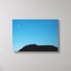Luna creciente y silueta de montaña, tomada al amanecer.