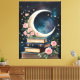 Lienzo Luna, estrellas, Rosas y libros