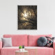 Esta impresión de tela envuelta presenta un mítico cielo nocturno. El aire está impregnado de niebla. La luna llena que brilla a través de los árboles ilumina las nubes brumosas en tonos dorados, naranjas amarillos, blancos y marrones y forma un interesante patrón abstracto.