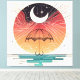 Una caprichosa escena del cielo nocturno donde una luna creciente se equilibra suavemente sobre una sombrilla mientras la fina lluvia se transforma en estrellas. Un acento boho soñador—perfecto para dormitorios, rincones de lectura, rincones de meditación, guarderías, cafeterías acogedoras, oficinas en casa o espacios de sanación espiritual.