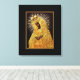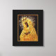 Madonna negra en la oración... en la impresión de lona. Nuestra Señora de la Puerta del Amanecer (lituano: Aušros Vartë Dievo Motina, polaco: Matka Boska Ostrobramska, bielorruso: М а ц і Б ж ^^ BurnBurn"". Icono cristiano de la Santísima Virgen María venerada por los fieles en la Capilla de la Puerta del Amanecer en Vilnius, Lituania. La pintura fue exhibida históricamente sobre la puerta de la ciudad de Vilnius; las puertas de la ciudad de la época contenían a menudo artefactos religiosos con la intención de evitar ataques y bendecir a los viajeros que pasaban. La pintura es de estilo renacentista del norte y se terminó alrededor de 1630. La Virgen María es representada sin el niño Jesús. La obra de arte pronto se hizo conocida como milagrosa e inspiró a un seguidor. En 1671 se construyó una capilla especial a cargo de los Carmelitas Discalcadas. Al mismo tiempo, posiblemente tomando prestado de la tradición ortodoxa oriental, la pintura estaba cubierta en una costosa y elaborada riza de plata y oro, dejando sólo la cara y las manos visibles.
