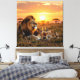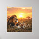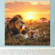 Eine stolze Löwenfamilie ruht gemeinsam in der afrikanischen Savanne unter einem warmen Sonnenuntergang. Das Bild symbolisiert Stärke, Zusammenhalt und natürliche Schönheit. Ideal für Tierliebhaber, Naturliebhaber oder als kraftvolles Dekorationsmotiv.