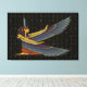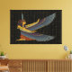 Una huella de lienzo con Mamáes sentada con alas. Este diseño de Maat está con la pluma de avestruz que representa la verdad en su cabeza. El dorado trasfondo jeroglífico egipcio también resalta a la Diosa de la verdad, la justicia, el equilibrio y el orden.