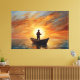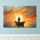 Lienzo Man fishing inside the boat with a sunset