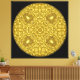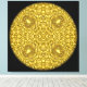 Obra de arte de mandala de disco dorado sobre fondo negro