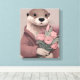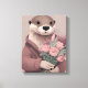 Reservados todos los derechos © Angelandspot Una nutria adorable contiene un ramo de flores