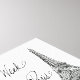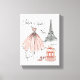 Este elegante diseño ofrece un divertido guiño a la Semana de la Moda de París. Una alta costura que sale directamente de la pista de aterrizaje es la estrella del espectáculo en esta impresión de estilo vintage. Un paquete de regalos hermosamente envueltos y bonitos tachuelas rosas le dan un poco de diversión a las chicas. Una impresionante silueta de la icónica Torre Eiffel de fondo le da un toque de ooh la la a este diseño de moda. | Semana de la Moda III sobre el blanco, por Anne Tavoletti