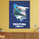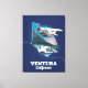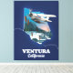 Mapa de viajes de Ventura California en un hermoso estilo vintage, decorado con un hidroavión.