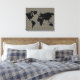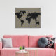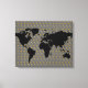 Mapa estilizado del mundo negro con muchas notas musicales de color dorado en el fondo. Música al mundo
