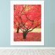 Photo of Japanese maple trees with dark curved branches and bright red leaves in autumn