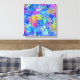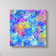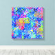 Este lienzo estirado tiene todos los colores vivos de los peces de agua salada. Los tonos azules se mezclan con el amarillo, el naranja, el violeta, el verde limón, el rosa, el agua y el negro. Las diferentes texturas y opacidad dan profundidad al diseño.