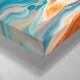 This is a stunning, high-detail abstract fluid artwork that captures the aesthetic of marbling and poured acrylics. The dominant color theme blends cool, intricate shades of teal, turquoise, and dusty blue with striking pops of saturated orange and tangerine. White and creamy-grey tones flow throughout, creating a sense of luminosity and depth.
