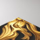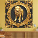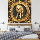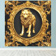 Una imagen impactante con un lobo negro montado contra un lujoso marco ornamental de oro, que evoca un sentido de mística y poder. El contraste entre la piel fina y dorada del lobo y los detalles complejos y elegantes del marco crea una composición visualmente cautivadora.
