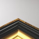 Una impresionante imagen con un avestruz negro sobre un lujoso marco ornamental dorado y negro, que evoca un sentido de opulencia y exotismo. El contraste entre las elegantes plumas negras del avestruz y los detalles complejos y elegantes del marco crea una composición visualmente cautivadora.