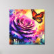 Lienzo Mariposa monarca sobre Rosa morado en la floral de