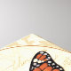 © Lisa Audit / Wild Apple. Una imagen vintage de una mariposa naranja. La imagen está rodeada de huellas de color marrón con la mariposa dentro de un círculo blanco. También hay texto que se puede ver en la imagen.