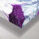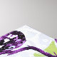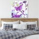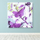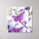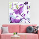 Diseño original creado con un ilustracion vintage con mariposas púrpura sentadas en una rama de hojas y un fondo de patrón floral azul claro.
