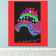 I painted a silhouette portrait of a girl with a colorful funny hat and shoulder length hair.