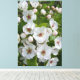 Flores completas, flores de pera, blanco con un vibrante centro rosado y hojas de verde. Personalizar los tamaños de las obras de arte de lona para que se adapten a tu estilo de decoración.