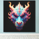 Este retrato psicodélico de dragón —azul cobalto, cuernos de coral, oro ardiente— es arte fantástico con una auténtica presencia de galería. Poder antiguo. Paredes modernas. ¡También es ideal como un gran regalo!