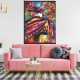 Vibrante y expresivo cuadro de acrílico contemporáneo sobre lienzo en colores dorados violetas amarillo inspirado en el Fausto de Goethe por Bulgan Lumini (c).