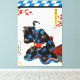 Un actor en el papel de un samurai, con una bata y una espada coloridas. La parte media de un tríptico. Aquí hay un Samurai en una rodilla frente a la plataforma donde se sienta el poderoso guerrero usando el Dragon Robe, escena en la sección derecha. Como intermediario, él se encarga del Samurai en la imagen izquierda de los tres. De un original corte de madera del siglo XIX (1848), 'Soga no Taimen' (Escena de una obra de Soga), de Utagawa Toyokuni. Todos los derechos reservados © 2014 padre art
