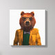 Este diseño presenta un retrato de oso vestido con gafas y una chaqueta.