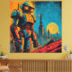 This vibrant digital art features a larger-than-life man-machine giant robot, exuding vivid colours and captivating design. The sci-fi theme is accentuated by the presence of iron robots, cyborgs, and humanoids, creating a visual feast for the eyes. The machine's intricate details come to life in a mesmerising display of futuristic art, evoking a sense of wonder and awe.
