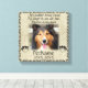 Mi amigo fiel y amoroso, ya no está a mi lado, pero... para siempre en mi corazón. Con un marco giratorio decorativo negro y huellas de pata en forma de corazones con un fondo burlap marrón / beige. Poema mascota que va para perros, gatos o cualquier mascotas con patas. Rindan tributo a un mascota querido con estos regalos conmemorativos personalizados keepsakes o ofrezcan sus condolencias con regalos personalizados de compasión de Healing Lears para honrar a un mascota especial en tu vida. Añade tu imagen y cambia el texto (Nombre y fechas) a la tuya.