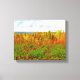 EL CANVAS GLOSS PRINT CUENTA CON UN HERMOSO DÍA DE OTOÑO EN MICHIGAN: ÁRBOLES DE AMARILLO CLARO, NARANJA Y VERDE LÍMITE CON AGUA AZUL EN EL FONDO. NUBES DE FLUJO BLANCO SOBRECARGADAS.
