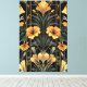 Aprovecha la sofisticación Art Déco atemporal con este exquisito patrón. Las flores doradas leguminosas están bellamente contrastadas por elegantes hojas de color gris-azul que se curulan y se enrollan hasta un punto fino. Además del atractivo clásico del Deco, unas líneas delgadas y rectas de oro corren verticalmente de arriba a abajo, fijadas en un fondo negro dramático. Este diseño combina a la perfección los motivos florales orgánicos con elementos geométricos nítidos, capturando el espíritu lujoso y refinado de la época Art Decó. Ideal para añadir un toque de glamour vintage a cualquier espacio o proyecto.