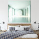 A serene architectural gallery defined by soft mint tones, symmetrical arches, and a reflective floor that enhances the calm geometry of the space. Gentle light creates depth and clarity, making this artwork a refined addition to modern homes and professional interiors.