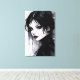 Este cuadro desprende un ambiente encantador y misterioso. Los negros profundos y los tonos suaves se mezclan exquisitamente para crear una hermosa expresión femenina que atrae a la vista. Su mirada capta el corazón del espectador, como si estuviera contando una historia especial. Esta pieza añadirá elegancia a cualquier espacio y dejará una profunda impresión en el espectador. Es una adición perfecta a cualquier colección de arte, decoración interior o como regalo especial.