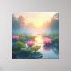 Esta imagen hipnotizante captura un estanque de loto pacífico bañado en el suave resplandor del amanecer. La niebla se levanta suavemente, envolviendo el escenario en tranquilidad mientras las flores de loto florecen vibrantemente contra las aguas tranquilas. La luz del sol de la madrugada se filtra a través de la niebla, lanzando una reflexión dorada sobre el agua. La atmósfera serena del estanque, rodeado de frondosas hojas verdes, simboliza la paz, la renovación y el despertar espiritual, invitando a los espectadores a un momento de calma e introspección.