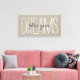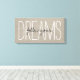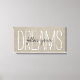 Diseño de impresión de arte de lienzo rústico, sencillo y sencillo, con "Sigue tus sueños" en tipografía escrita a mano o añade tu propio texto personalizado. Por favor, tenga en cuenta que el fondo es una textura falsa de burpón, no hecha de material de burpón. Haga clic en el botón Personalizar para agregar su propio texto, cambiar fuentes y colores para un diseño personalizado único.