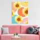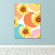 Esta colorida pintura mural de tela presenta arte abstracto en un estilo de bloque de color azul, rosa, naranja, amarillo, con girasol.Un perfecto lienzo artístico artístico para tu sala de estar.