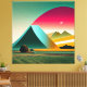 Las formas audaces y los colores vivos chocan en este lienzo de paisaje abstracto moderno. Esta obra de arte retro-futurista da energía a la pared con encanto geométrico y vibrantes tonos de puesta de sol.