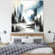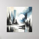 Lienzo Moderno Resumen Ciudad nocturna - Blanco y azul ne