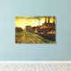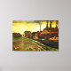 Molino de hierro en La Haya de Vincent van Gogh es una pintura arquitectónica vintage de arte fino postimpresionista que presenta las fábricas de hierro en La Haya, Países Bajos. Sale humo de las chimeneas y contamina el medio ambiente. Hay un barco en el canal con trabajadores cerca.