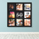 Un regalo de cumpleaños número 50 único o keepsake, celebrando su vida con un collage de 8 de sus fotos. Añada imágenes de su familia, amigos, mascotas, pasatiempos o destino de viaje de ensueño. Personalice y agregue un nombre, edad 50 y fecha. Letras de color gris y blanco. Un fondo negro de moda. Este lienzo también está disponible en nuestra tienda con fondo de color blanco o rosa dorado.